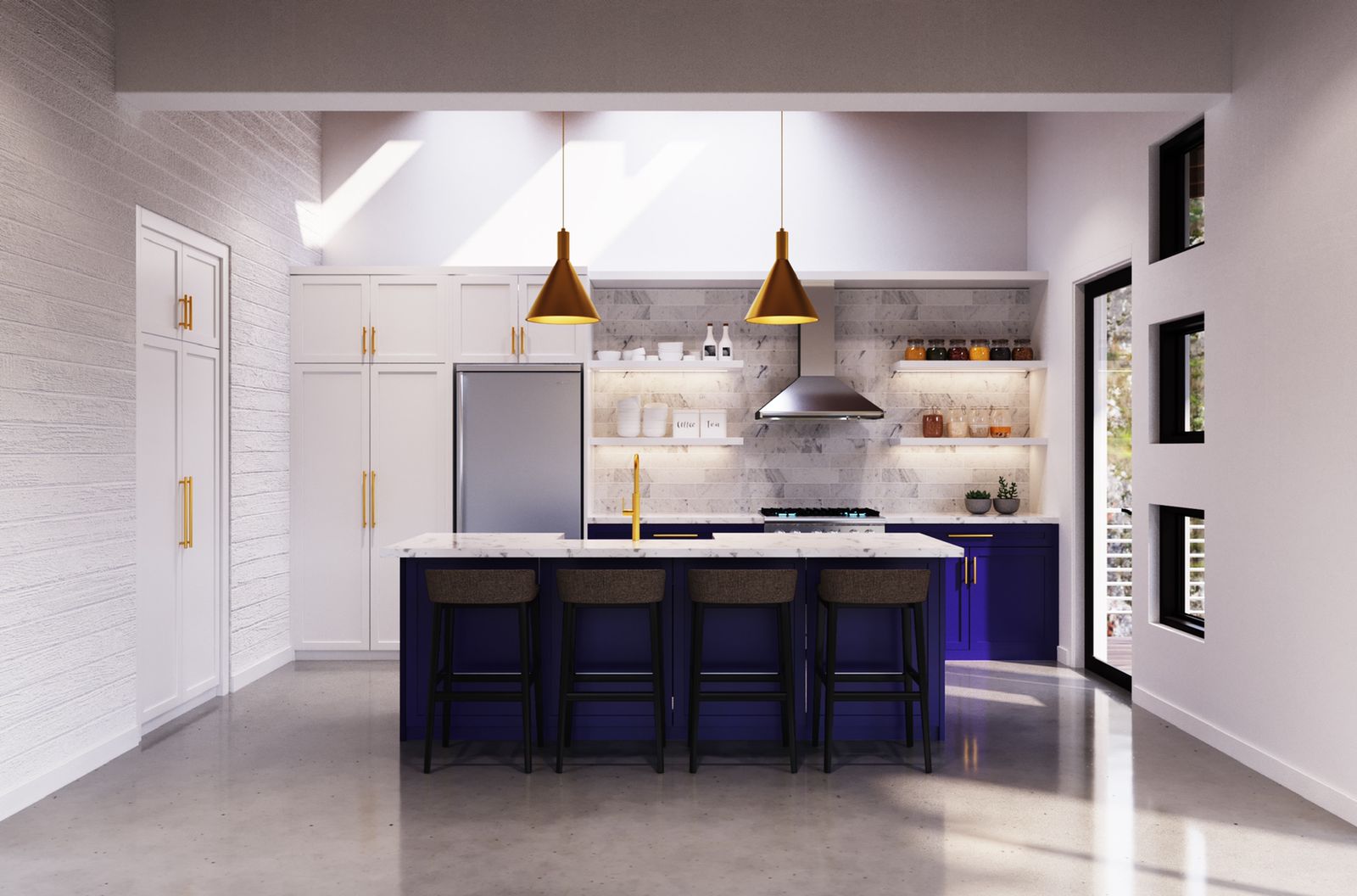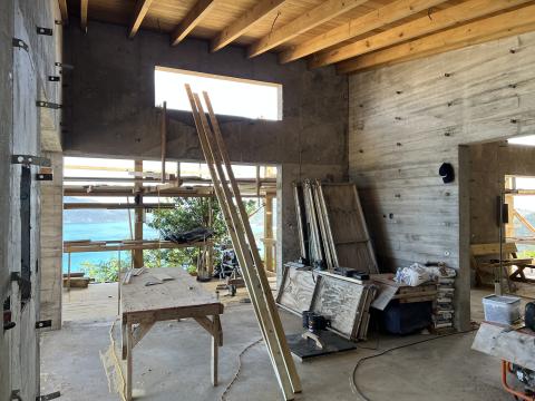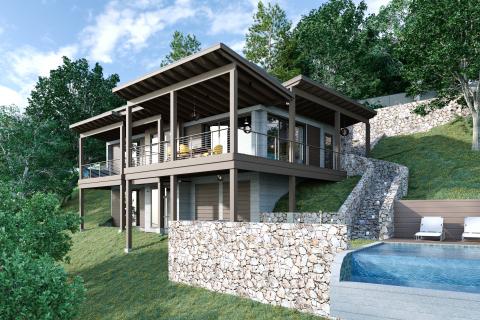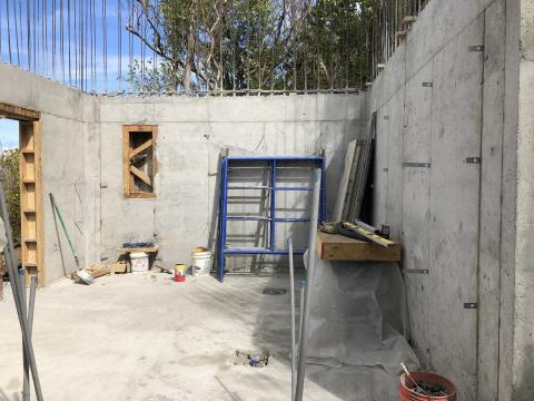 Designed to be a Pool House and short-term vacation rental, this cottage will also serve as the owner’s residence when on-island. It includes a downstairs “Owner’s Closet” where personal items can be secured when the property is tenanted. The main structure is raw concrete, intended to be cast with a board-forming detail on the exterior, and selected interior feature walls. The fixtures and finishes will embody a contemporary and tropical twist on a mid-Century Modern aesthetic, as can be found in select surviving Caribbean homes of that period.